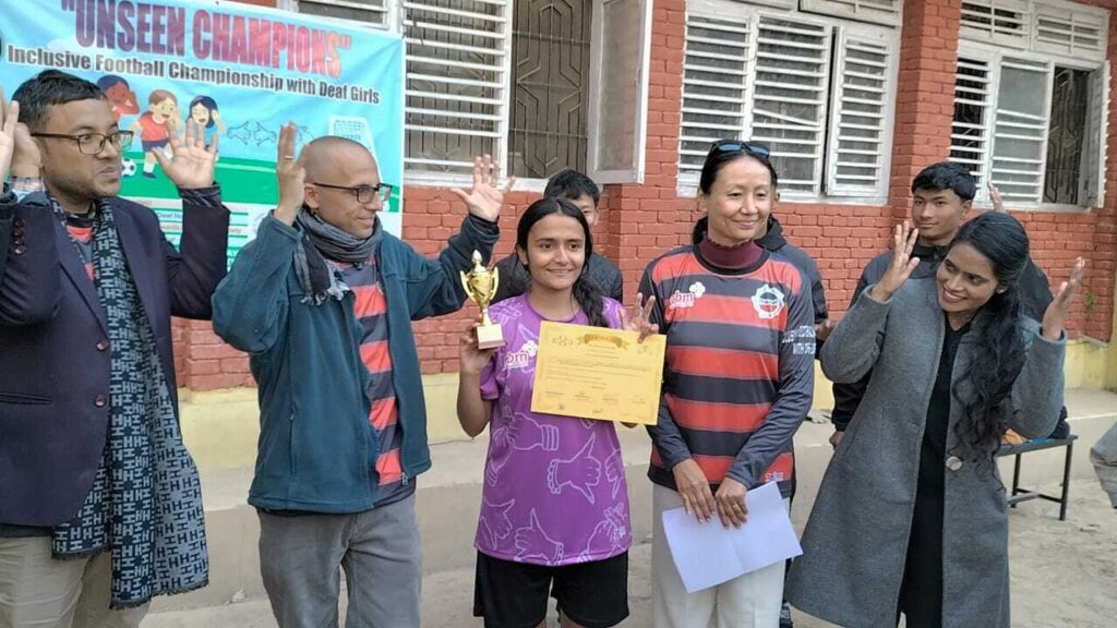Project “Unseen Championship “with Deaf Girls marked a significant milestone in advancing inclusive sports in Nepal. The project focused on empowering young deaf girls through structured football training, improved sporting facilities and a culminating competitive championship that celebrated ability, confidence, and teamwork.